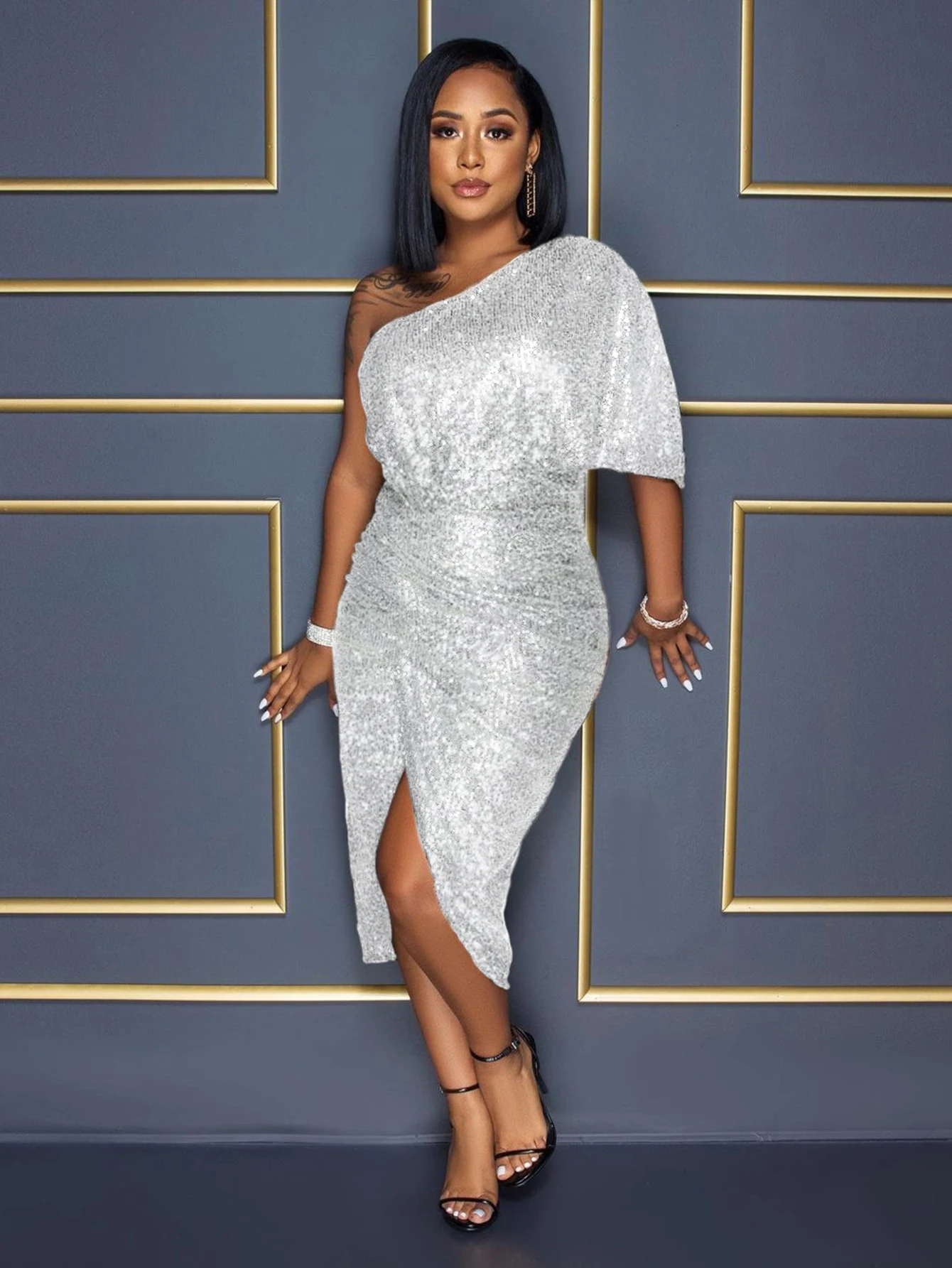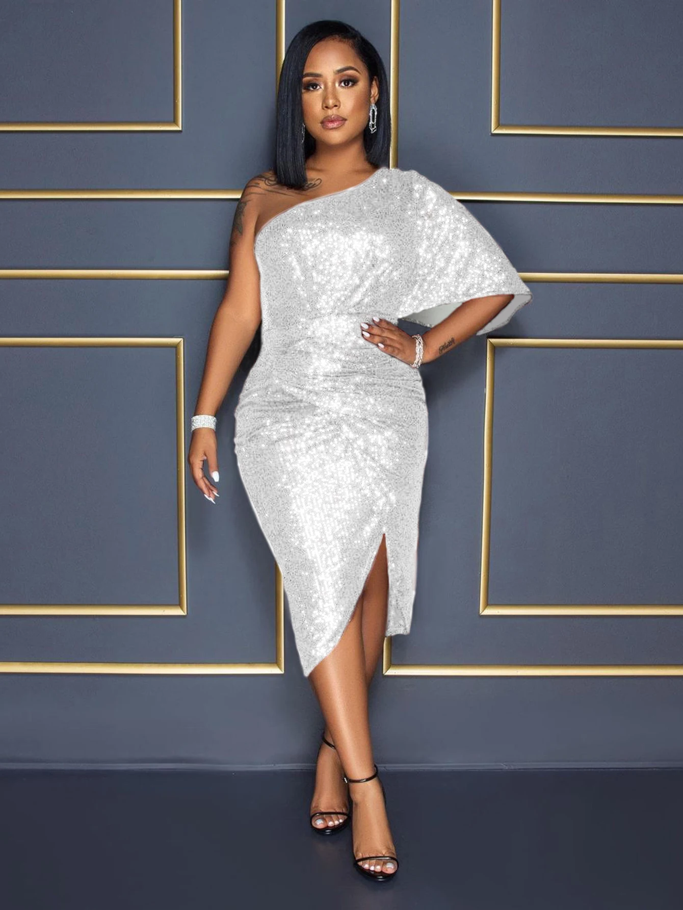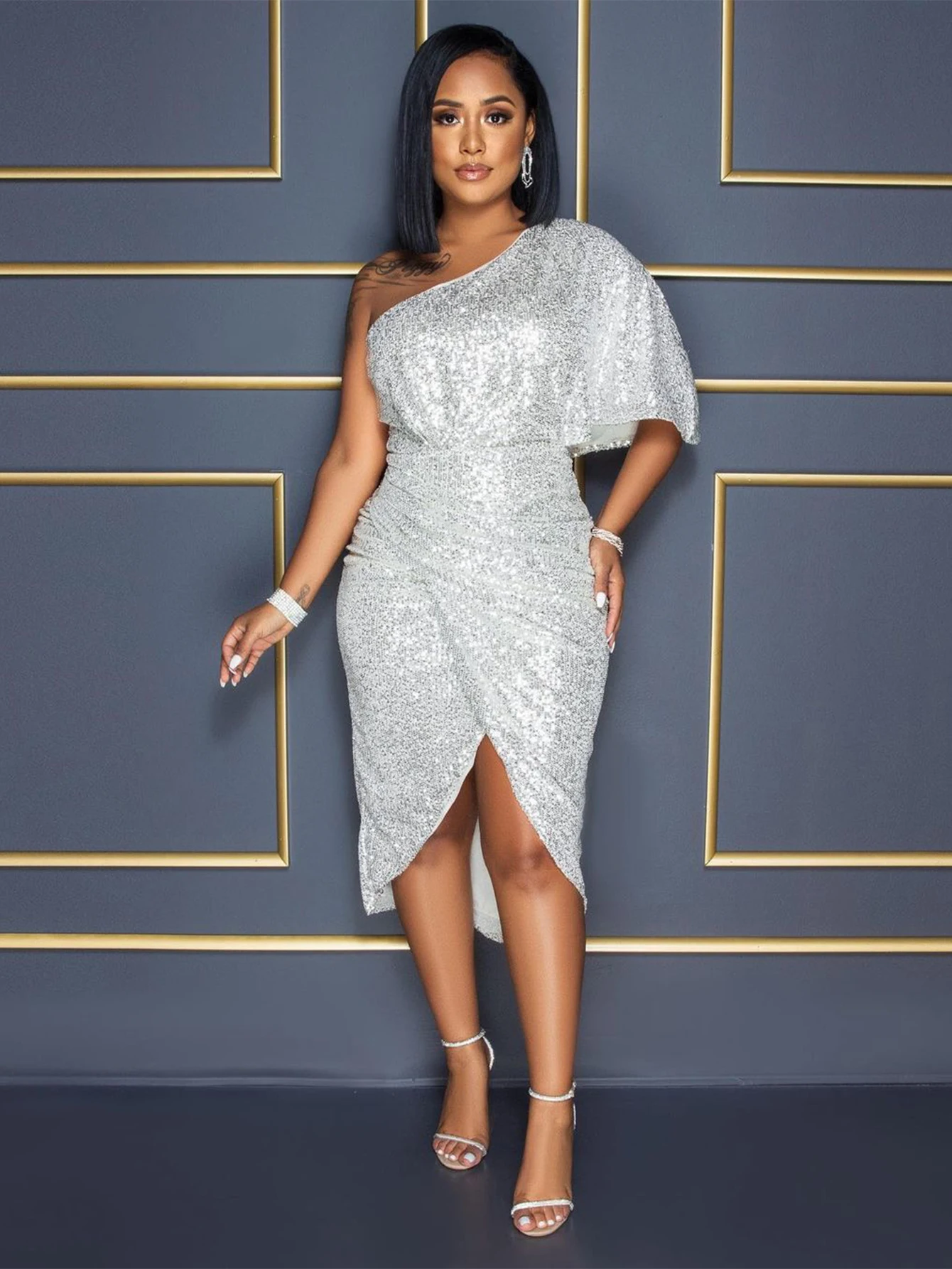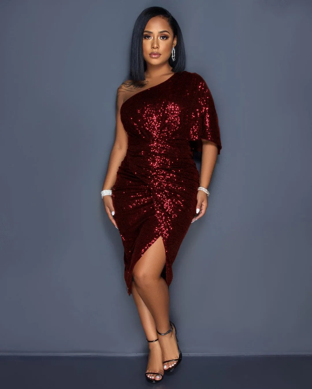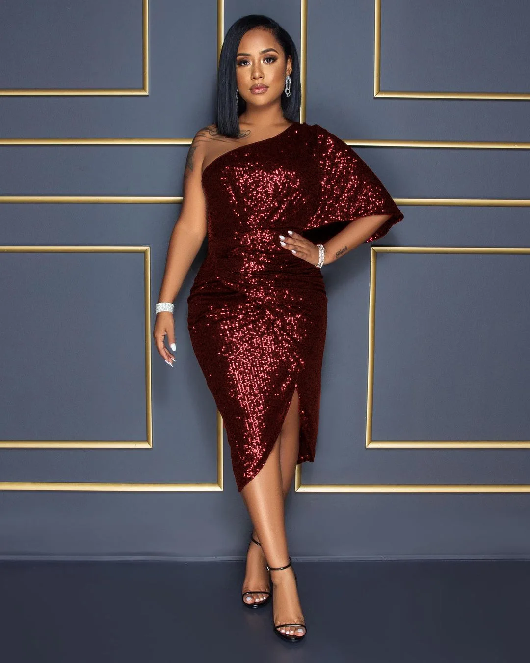 Burgundy Sequin Evening Dress – Single Shoulder, Sexy Prom Party Dress