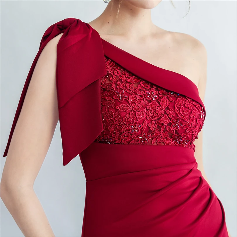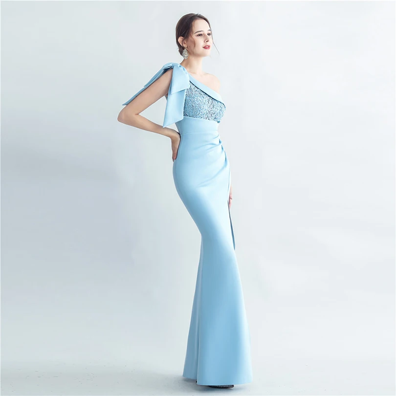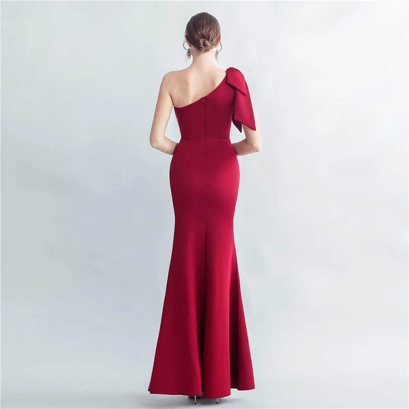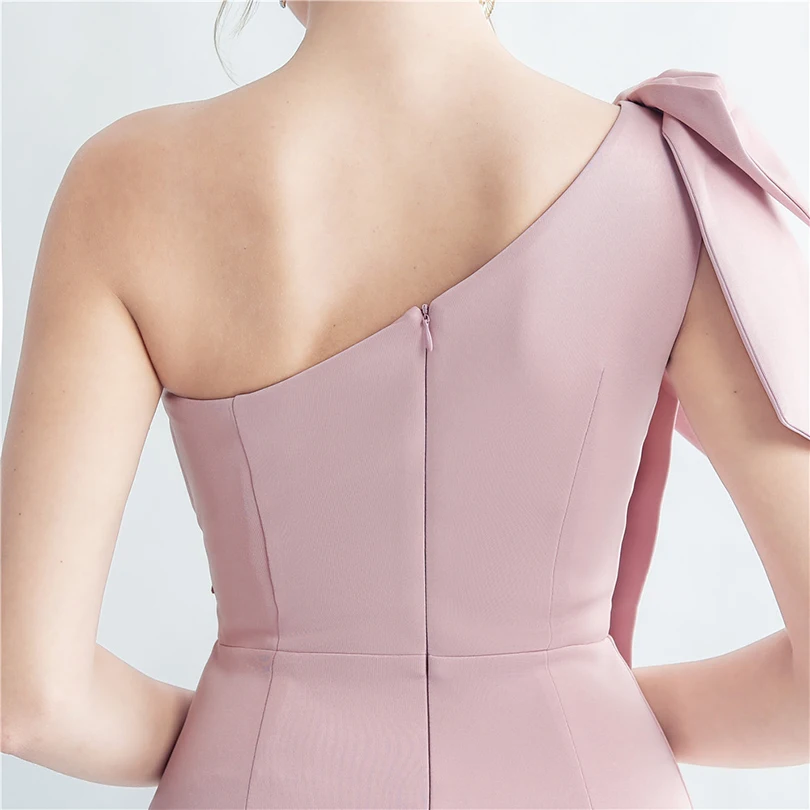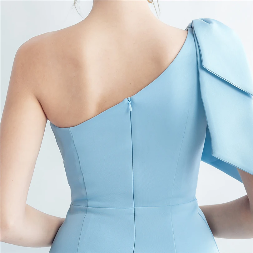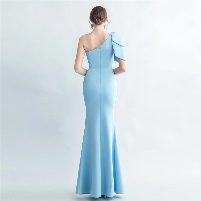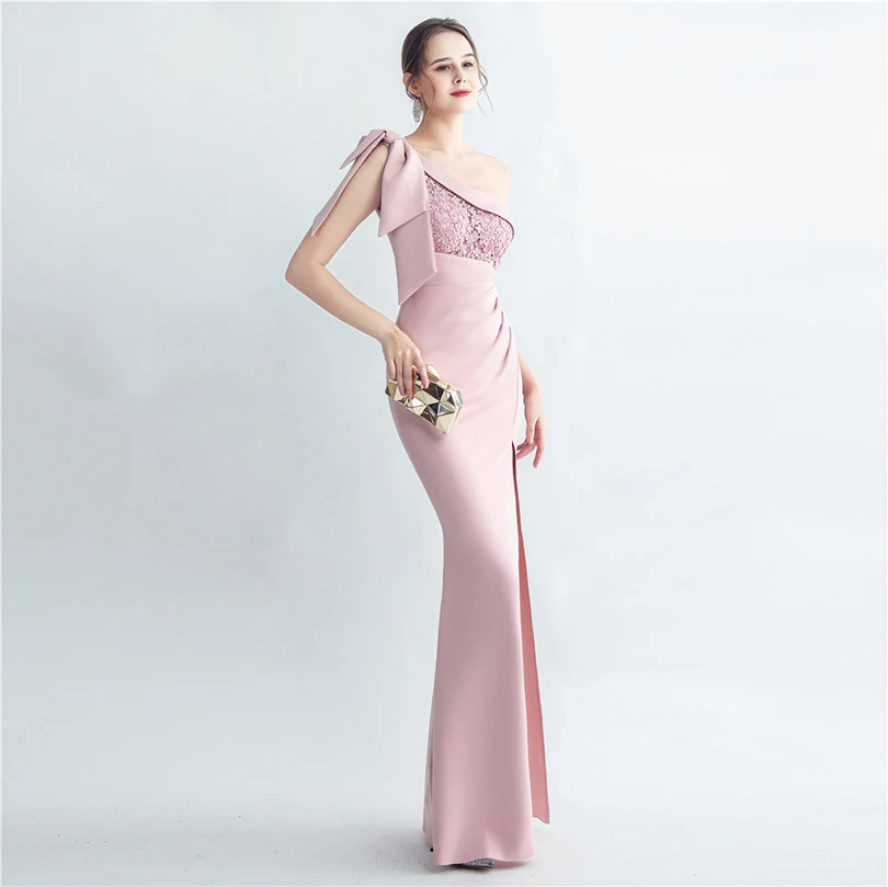 Candy Color Satin One-Shoulder Evening Dress with Slit and Appliques