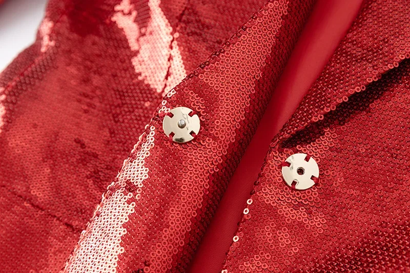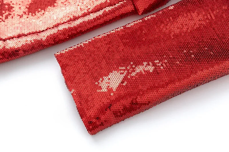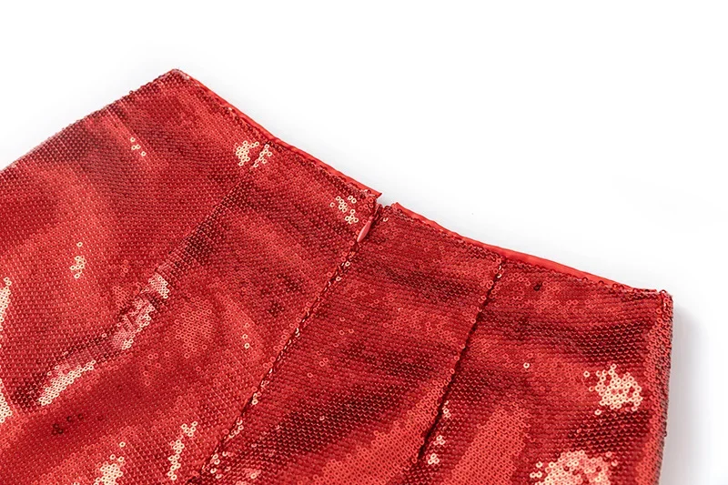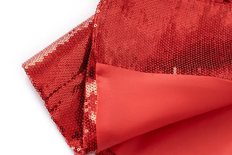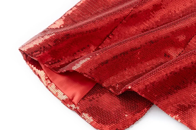 • Stylish Sequins Design :The suit top and shorts set features a eye-catching red sequins design, perfect for adding a touch of glamour to your holiday outfits.