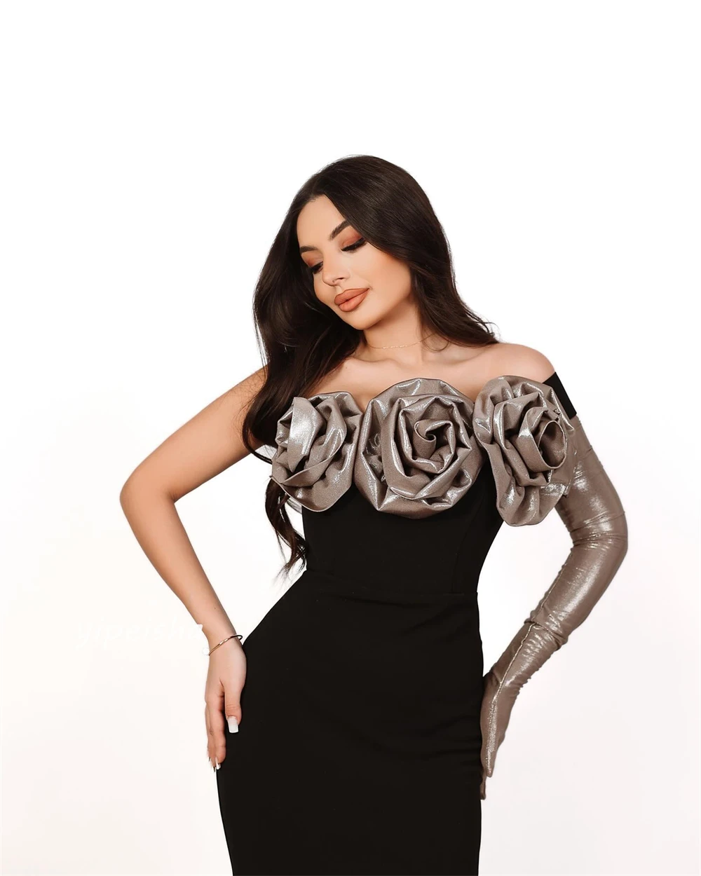Discover elegance with this bespoke one-shoulder mermaid gown, designed with premium jersey fabric. Perfect for beach occasions and formal events, it features stunning flower decorations, draped pleats, and a floor-length silhouette to make a lasting impression.