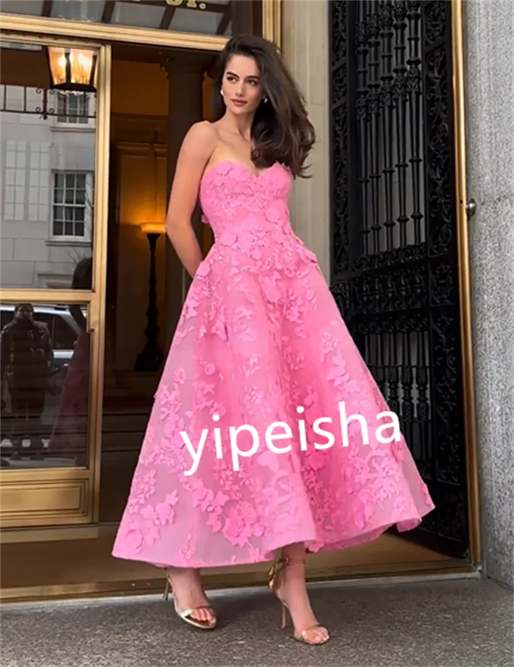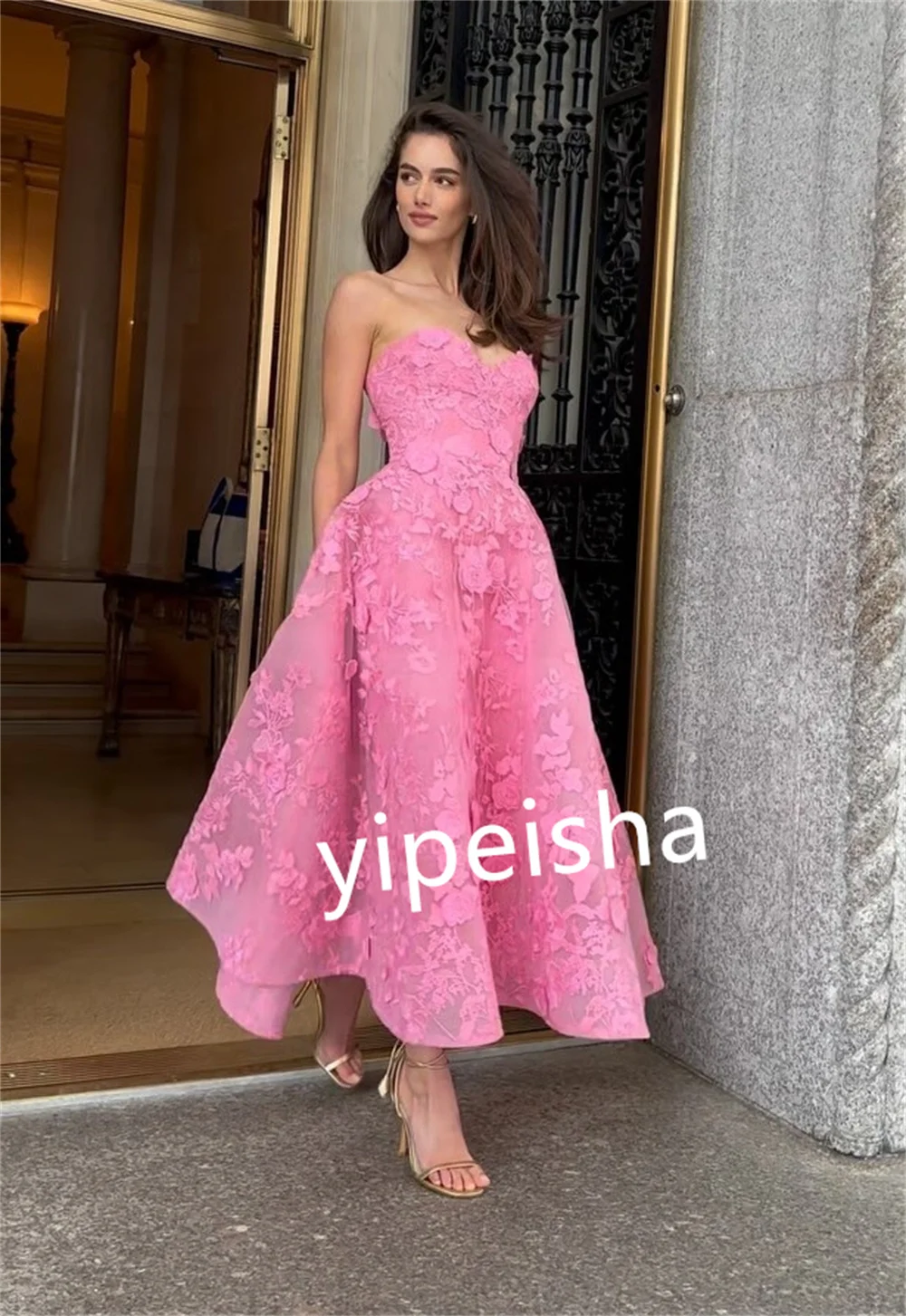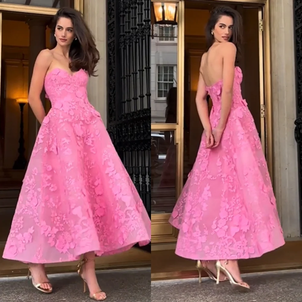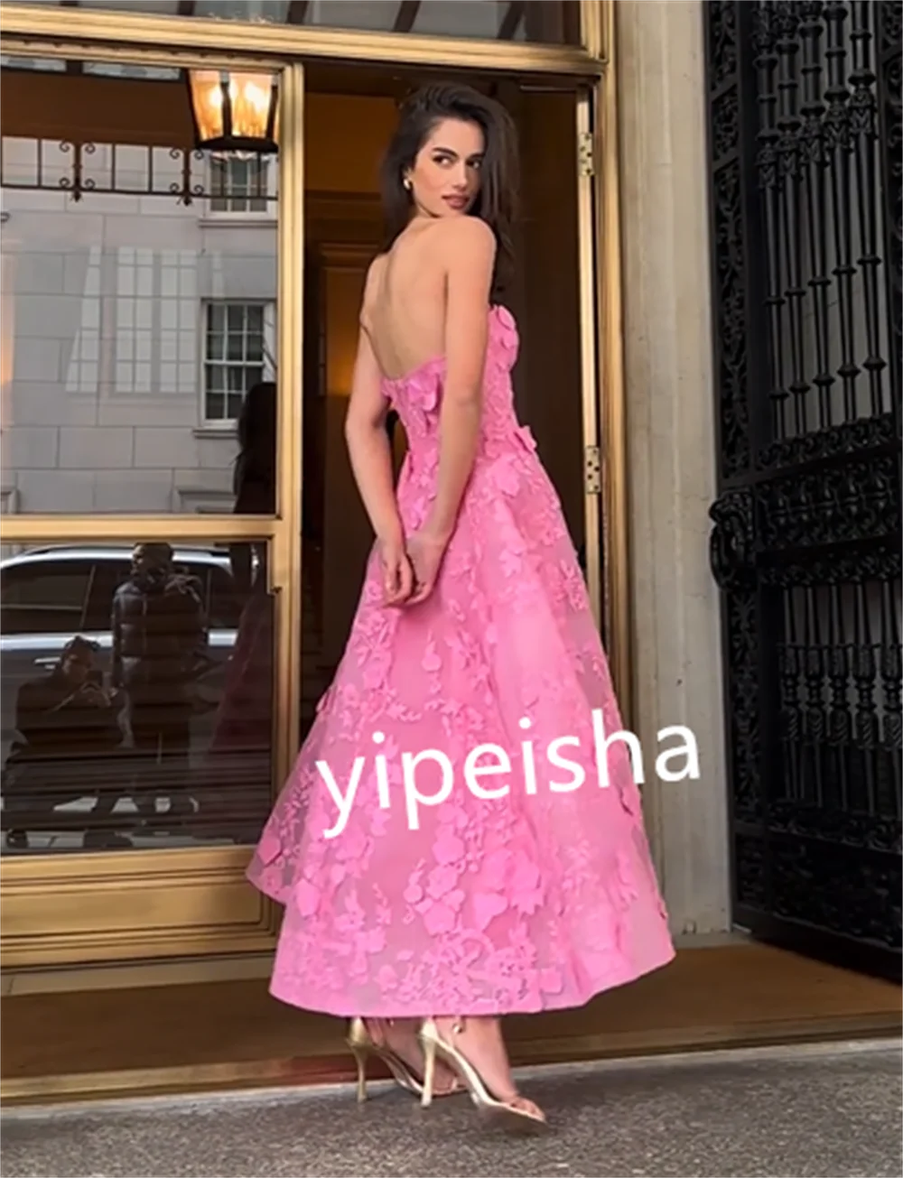 Elevate your occasion wardrobe with this customized strapless midi dress. Crafted from high-quality jersey fabric, it features a flattering ball gown silhouette, draped lace decoration, and a timeless strapless neckline. Perfect for birthdays or bespoke occasions, this ankle-length dress is both elegant and versatile.
