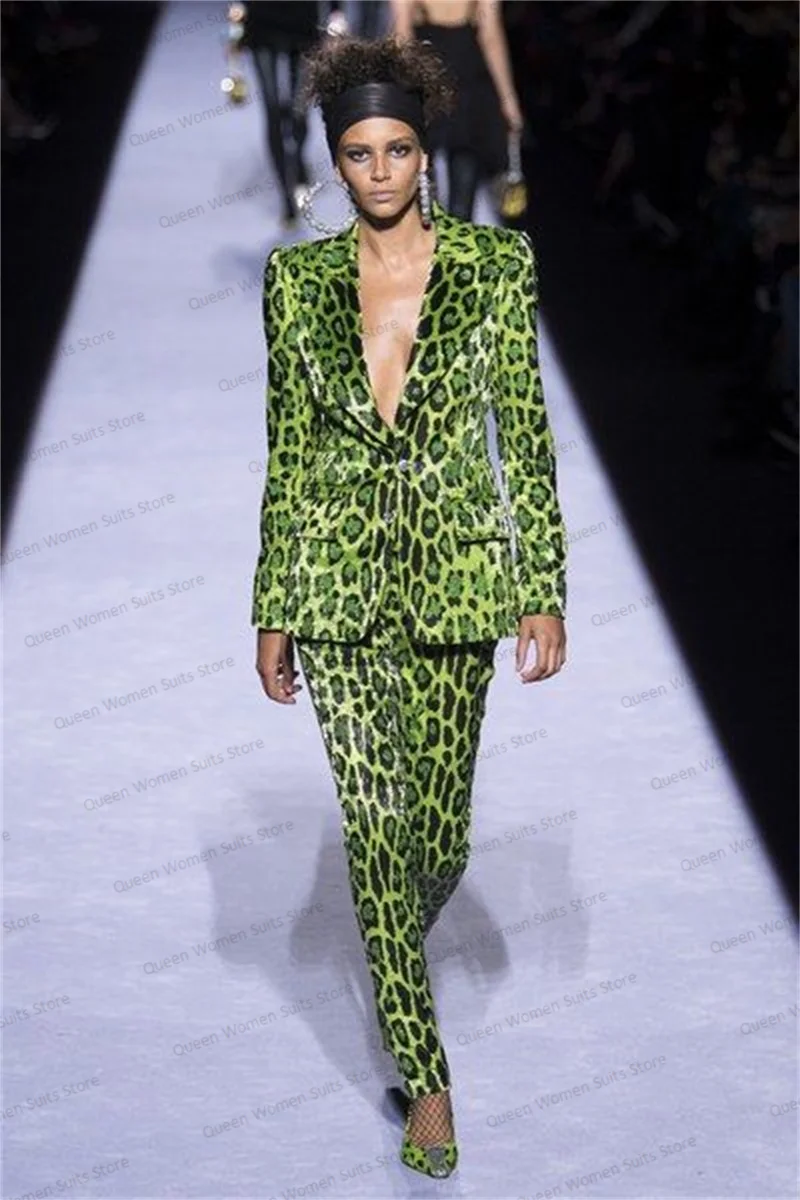 Sequins Leopard Women Suit Set – Blazer and Pants Formal Party Wear