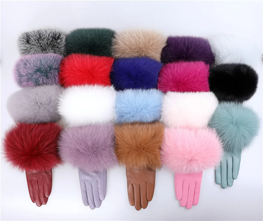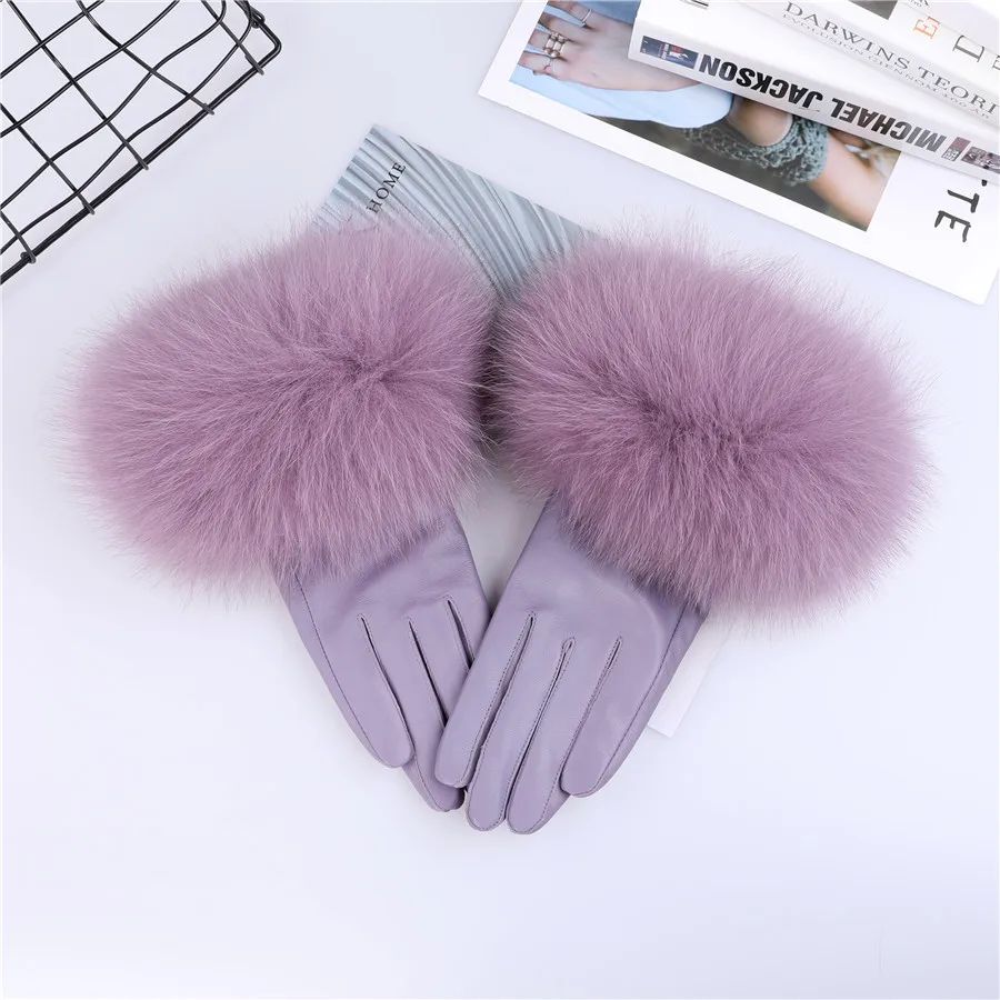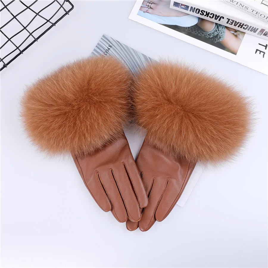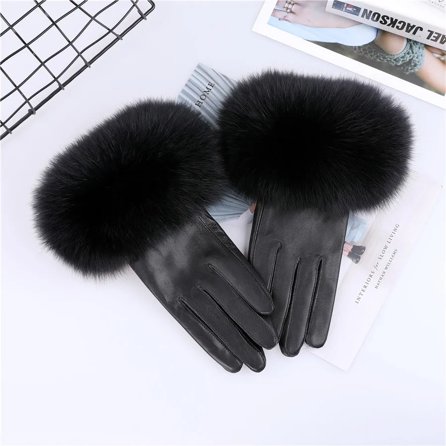 Sheepskin Leather Gloves with Fox Fur Trim – Women&